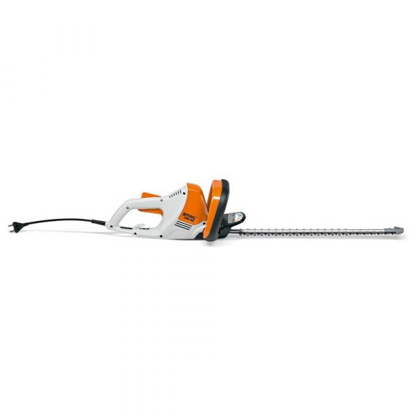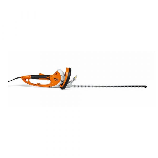 High-performance 600 Watt electric hedge trimmer with 2-stage reduction gear with low stroke rate and high torque for thicker branches. 5-position rotary handle allows for flexible, comfortable cutting. Transparent hand guard and laser-cut and diamond ground blades.